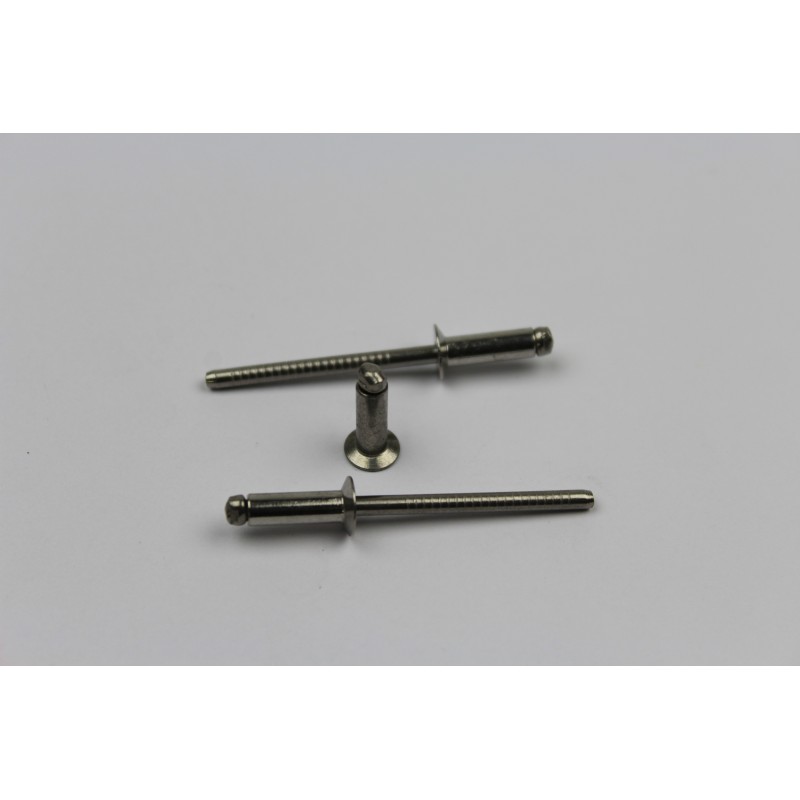 De gehele blindklinknagel (popnagel) bestaat uit RoestVast Staal. De nagel is voorzien van een RVS breekstift die tijdens het bereiken van de vereiste klemkracht afbreekt. De kop van de breekstift blijft in de nagel achter.